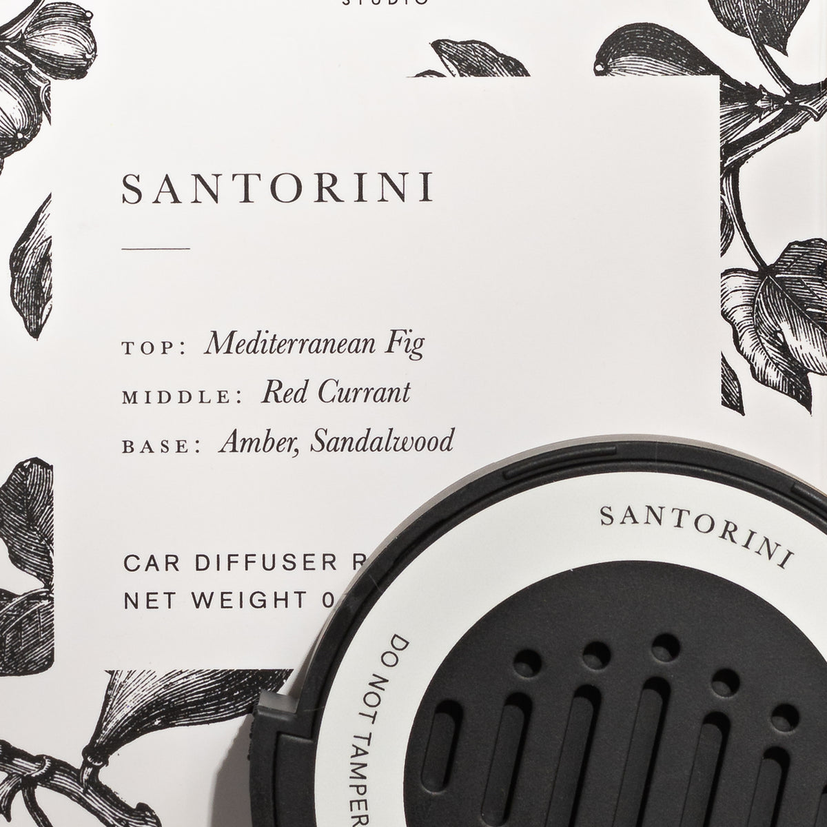 Mediterranean fig, red currant, amber, and sandalwood create a car scent that will make you dream of the Greek Isles.